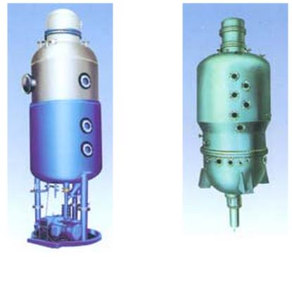 整個設備可分為加熱蒸發(fā)室、加熱夾套、汽液分離器、攪拌器等四部分。我廠在夾套加熱的基礎上經(jīng)多方面研究,設計了內(nèi)加熱、內(nèi)循環(huán)加熱,蒸發(fā)結晶鍋、用戶使用后反映其蒸發(fā)效果比外加熱(夾套加熱)高1.8倍。 該設備與產(chǎn)品有接觸部分,均采用1Cr18Ni9Ti制作,加熱蒸發(fā)室、如一園筒殼體,為按裝維修方便,采用不同厚度材料分兩段加工,用法蘭連接。封底可加工成半球形、碟形、或錐形器身上,下圓筒都裝有視鏡,以觀察溶液沸騰狀況,霧沫夾帶高度,溶液的濃度,結晶大小及分布情況等;鍋體內(nèi)入孔是為方便清洗、維修,下鍋部份焊上加熱夾套,其高度通過計算蒸發(fā)所需面積而定。
